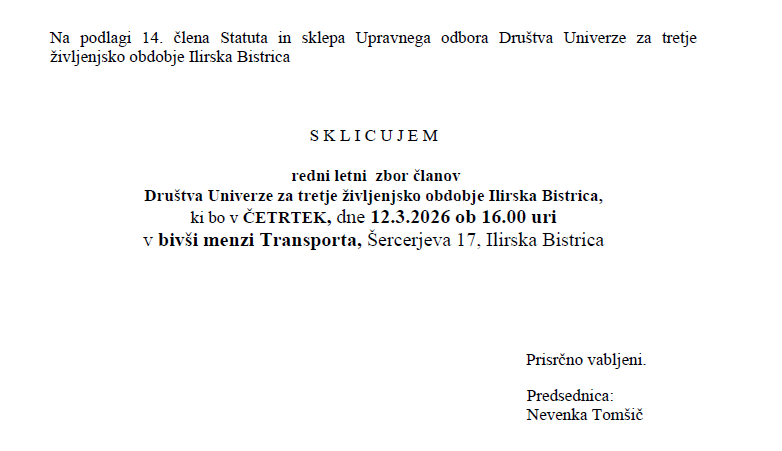 Društvo Univerza za tretje življenjsko obdobje Ilirska Bistrica