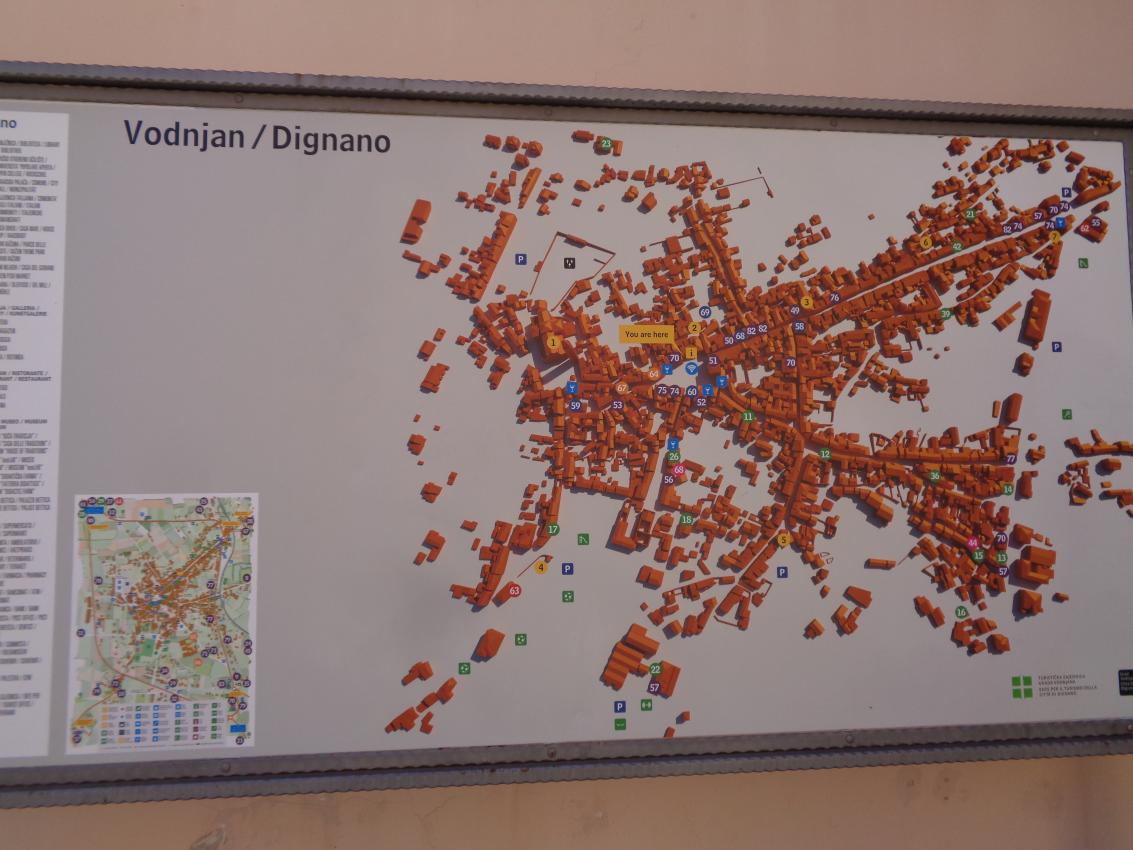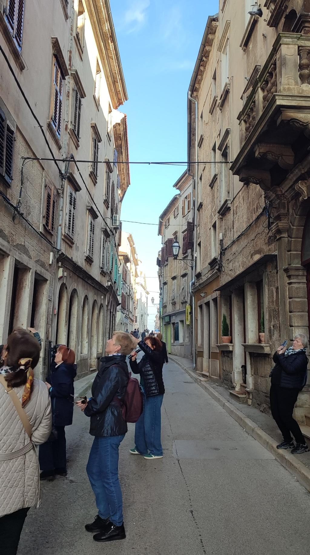 Na parkirišču nas je že čakala vodička Morena Matijaš in nam predstavila načrt ogleda »svojega« mesta. Že po prvih korakih smo lahko sklepali, da to ni običajno srednjeveško mestece. Leži na komaj 135 m nadmorske višine, kar nam bo olajšalo hojo, ni obzidja, ni kaštela. Bodo pa cerkvice, z murali poslikana pročelja, ki popestrijo kamnite mestne hiše.