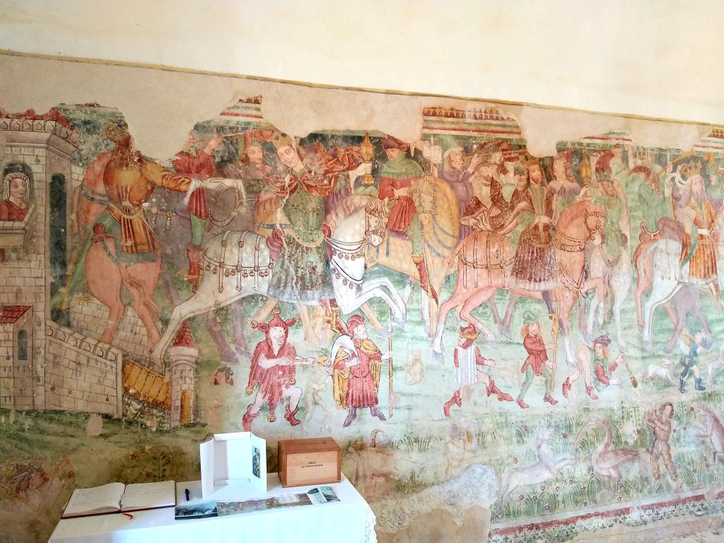 Pogled nam ujame njena severna stena s freskami. Tudi mi smo deležni srečanja s svetimi tremi kralji in njihovim spremstvom. Postavitev je zelo razgibana. Prvi je mlad golobradež. To je Gašper, drugi je že zrel moški z brado – Boltežar in spredaj sivobradi Miha na belem konju. Občudujemo njihova bogata oblačila. Kralji nosijo darila. Okrašeni so tudi konji, ki so v teku. Bližajo se Mariji, ki drži novorojeno dete Jezusa. Žal sta sam prihod in poklon poškodovana.