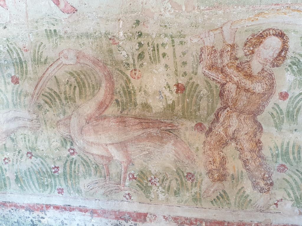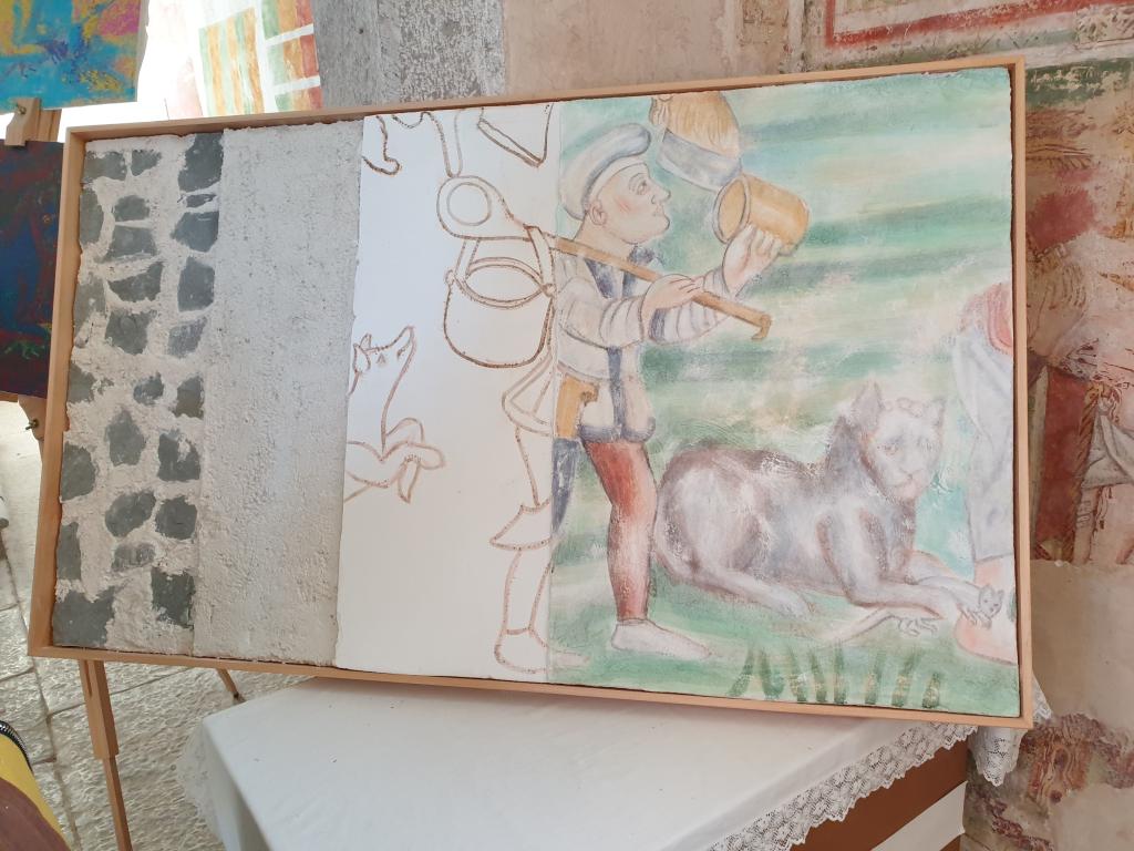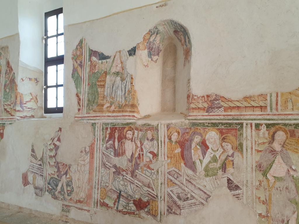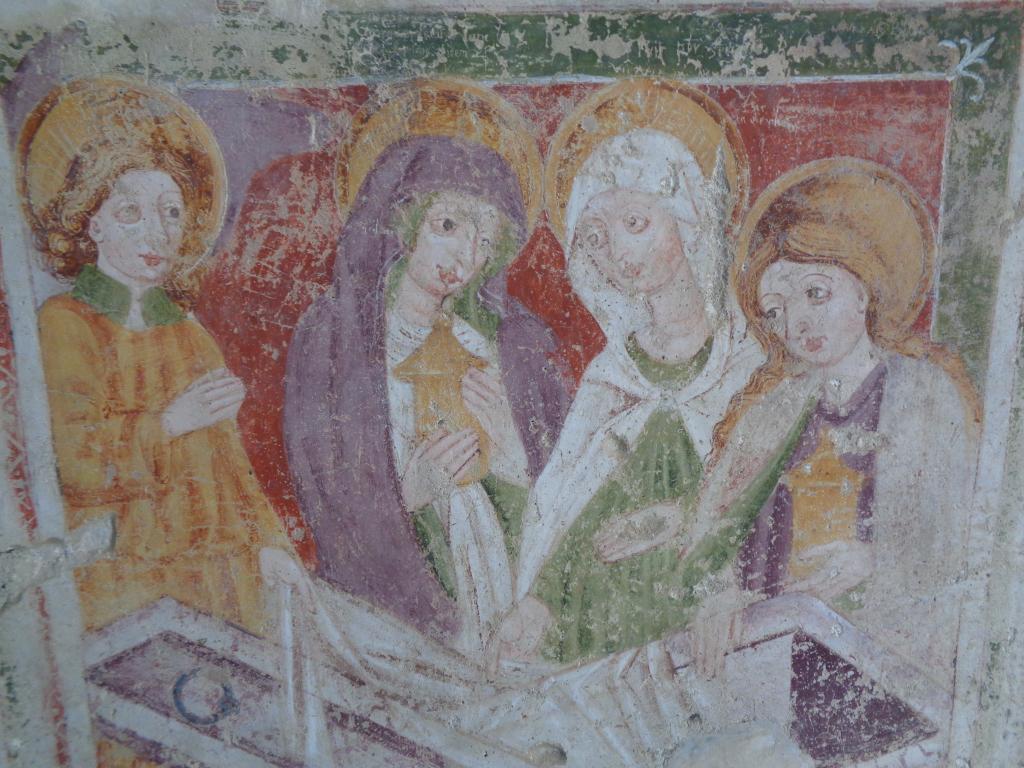 Freske, ki so nas pripeljale na dogodek pohoda in poklona treh kraljev, je naslikal Janez iz Kastva s sodelavci. ki ga poznamo tudi po znamenitih poslikavah v hrastoveljski cerkvi. Sodijo, da je bilo to leta 1490 ! Zgodbo je nadaljeval na južni steni, kjer je prikazal Kristusovo življenje in trpljenje. Žal je ta del močno poškodovan. Prizori so le delno ohranjeni: Kristus na križu, ob njem Marija in Janez Evangelist, Kristusovo vstajenje, ženske ob grobu, ostalo so le fragmenti. Na steni so tudi grafiti in letnice, ki segajo v 16. stoletje, kar priča, da so takoj po poslikavi cerkvice začeli prihajati in jo častiti številni verniki. V tistem času je predstavljala »sveto pismo revnih«.