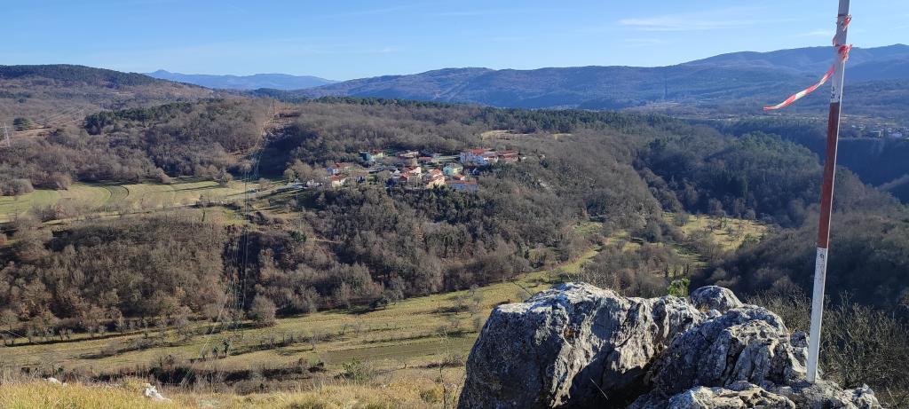 Z gospodom Rudijem smo se sprehodili še na vrh griča, od koder je bil prekrasen razgled na Park Škocjanske jame in vasice, ki kukajo iz zelenja in na Vremščico ter letališče.