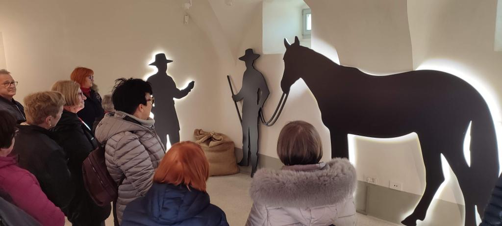 Z muzejsko vodičko smo se sprehodili znotraj edinstvene arhitekture srednjega veka po moderno zastavljenih muzejskih prostorih in poslušali o slavni preteklosti kraja v času, ko sta potekala skozi kraj promet in trgovina iz Srednje in Vzhodne Evrope proti Jadranskemu morju in obratno. Sprva so blago tovorili s konji in z volovi. Mitnica je bila postaja, kjer so za blago (sol, dišave, žito, žeblje, nakit, olje, milo, les, začimbe) in živino plačali dajatve ali v denarju ali v blagu, za kar je imela tudi posebna skladišča.