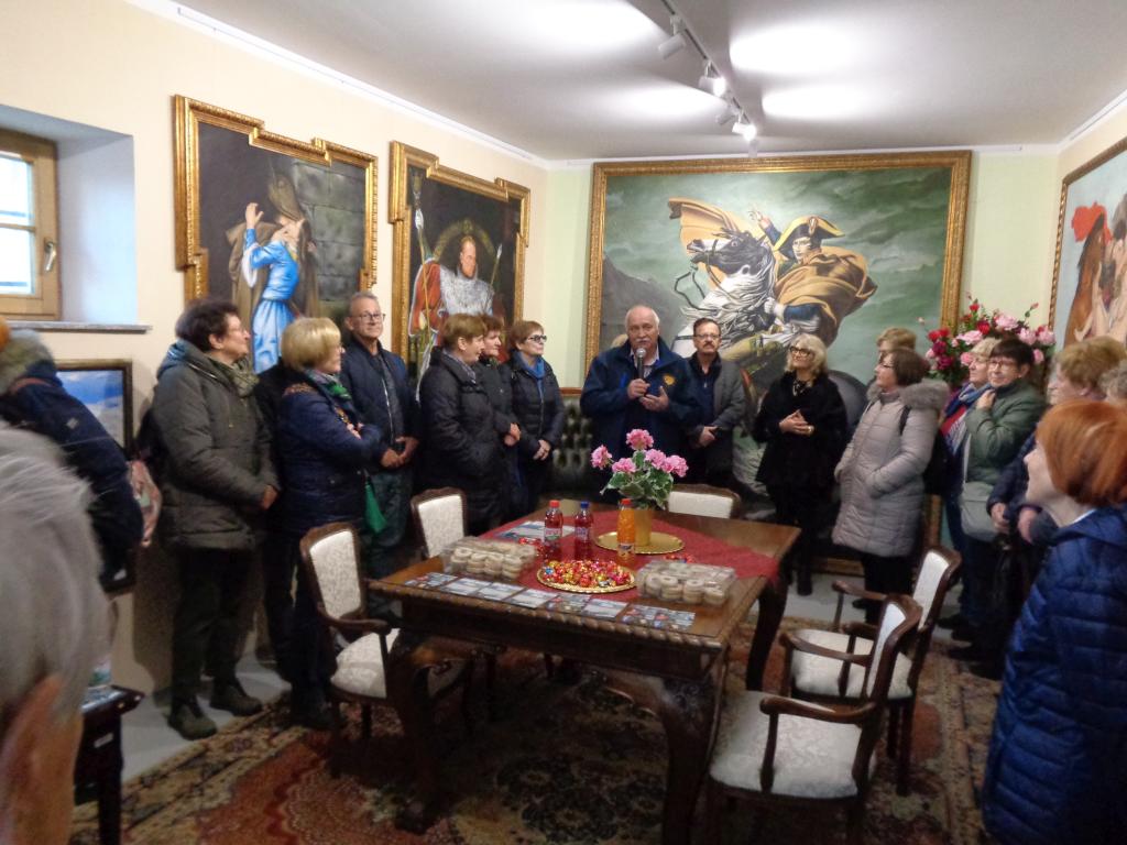 Za zaključek smo obiskali še čudovito obnovljeni dvorec furmanske hiše, kjer domuje Galerija Rutar in v njej razstavljata svoje umetnine slikarja oče in sin. Rutarjeva gospa in gospod sta nas prijazno sprejela, nakar smo se sprehodili po hramu umetnosti. Poslovili smo se po sladki »zakuski«.