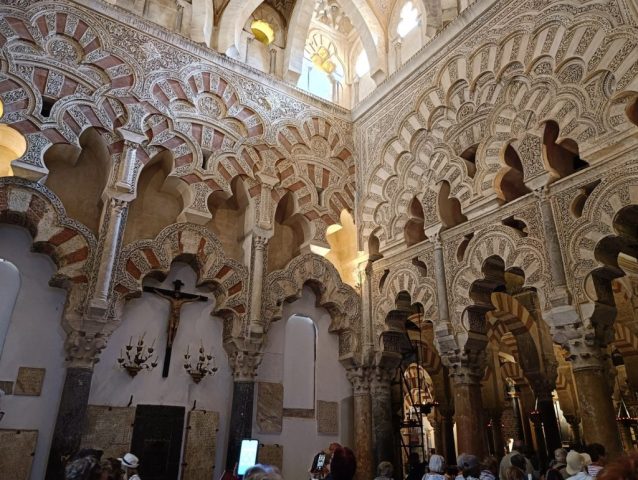CORDOBA, mesto znano po svoji bogati zgodovini, ki spaja rimske, islamske in krščanske vplive. Staro mestno jedro je na Unescovem seznamu. Največji dragulj mesta je Mezquita, nekoč mošeja, danes katedrala Marijinega vnebovzetja. In ni le vir ponosa za prebivalce Córdobe, ampak tudi vzbuja občudovanje obiskovalcev zaradi spektakularnosti impresivnega kompleksa in izjemne lepote njegovih elementov in okrasja. Ti so: arkadna stebriščna, dvorana z 856 stolpi z dvojnimi loki, ki so povišali strope. Edinstveni so rdeče-beli loki. Osrednja kupola je obložena z modrimi keramičnimi ploščicami z zvezdastimi vzorci, molitvena niša je bogato pozlačena in okrašena. Sredi mošeje je zgrajena krščanska katedrala. Za konec smo se sprehodili še po nekdanji judovski četrti.