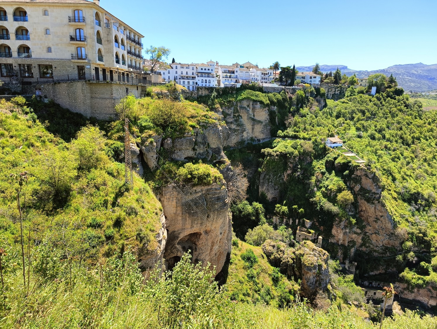 RONDA slikovito mesto ob reki Guadalevin, ki je zarezala več kot 100 m globok kanjon El Tajo in ga deli na dva dela. Povezuje ju »dramatičen« kamnit most, ki raste iz sten soteske. Mesto ima najstarejšo areno za bikoborbe.