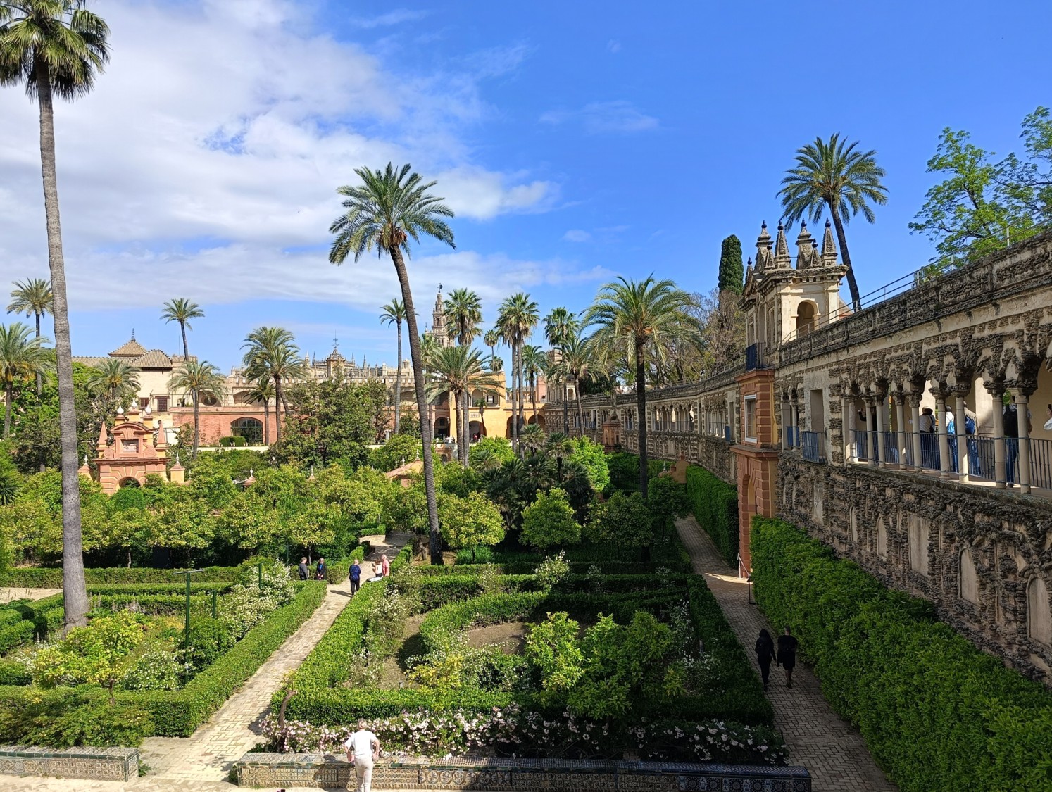kraljevo palačo Alcazar biser – mudejarskega sloga, v katerem se prepletajo mavrske, gotske in renesančne oblike. Obdajajo jo čudoviti vrtovi, ribniki in je kraljeva rezidenca še danes; sledijo: največja stolnica na svetu posvečena sv. Mariji sedeči, z grobom Krištofa Kolumba, zvonik Giralda (nekdanji minaret), trg Plaza Espagna (1929), Indijski arhiv, ki hrani dokumente iz španskih kolonij v Ameriki, Muzej lepih umetnosti, Setas de Sevilla – seviljske gobe, moderna lesena struktura sredi mesta. Alcazar, stolnica in arhiv so na Unescovem seznamu svetovne dediščine.