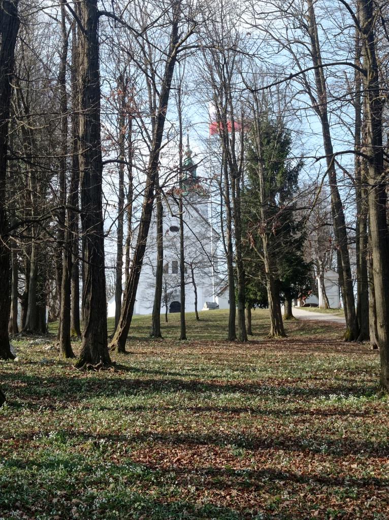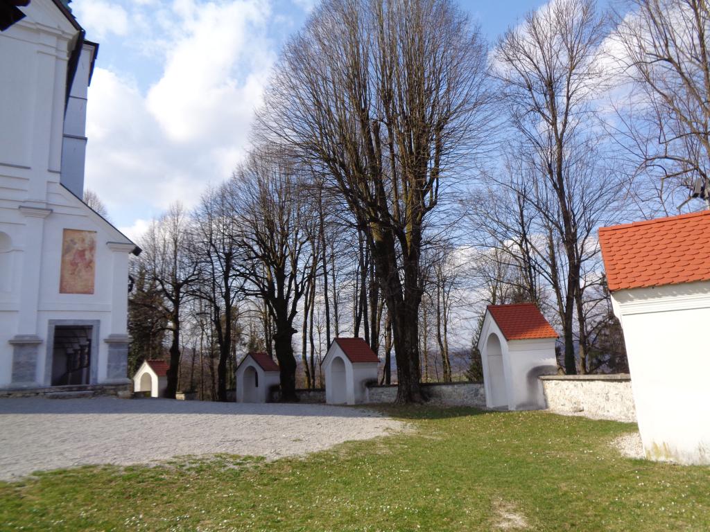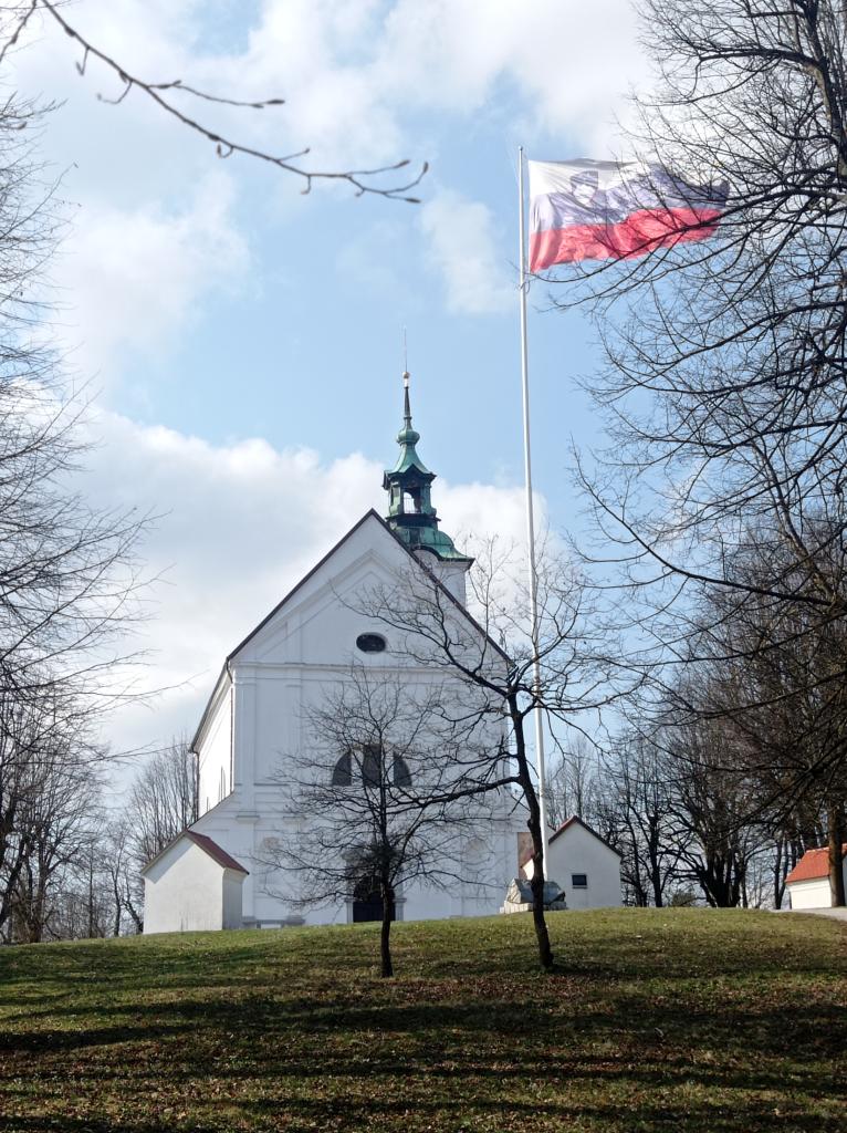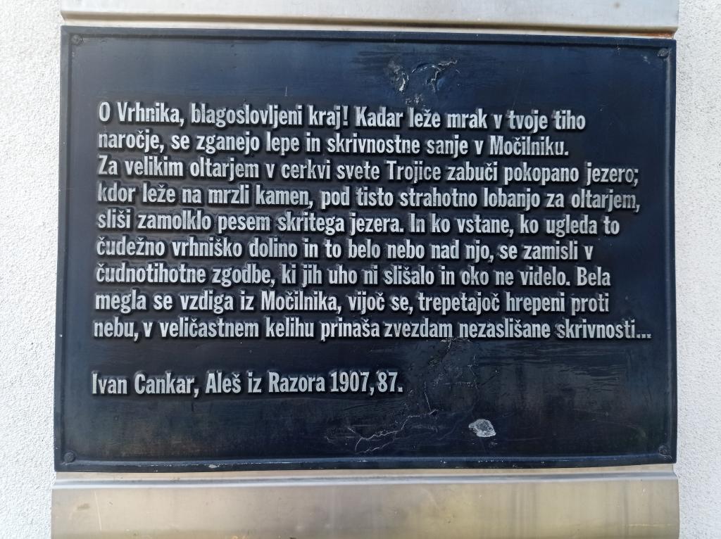 [1] Pisateljev citat »Bela kakor nevesta se sveti na holmu sveta Trojica, razgleduje se po sončni ravni, po tihem, sanjajočem močvirju, do Žalostne gore in do Krima.«