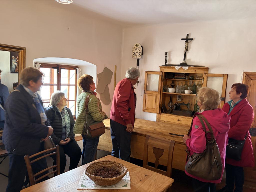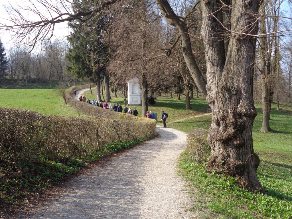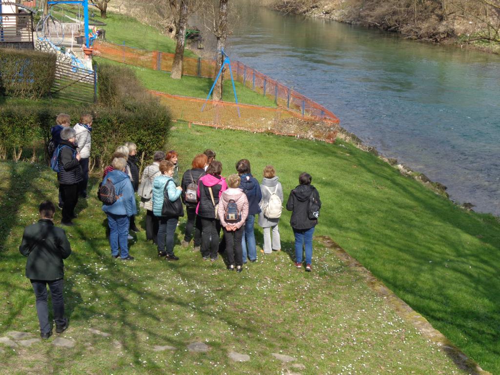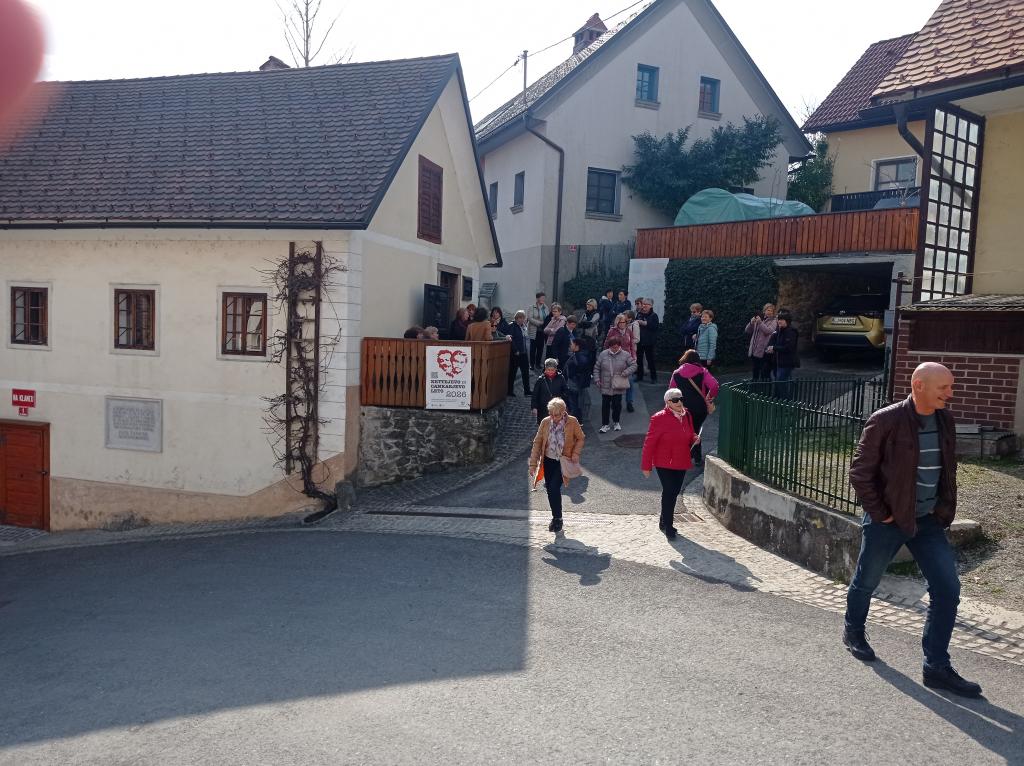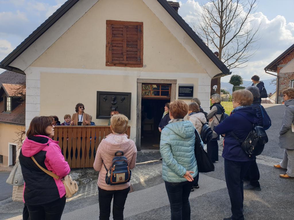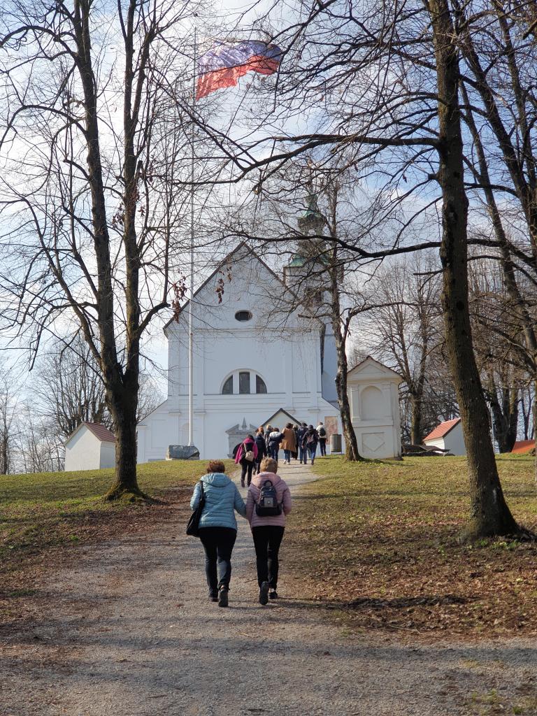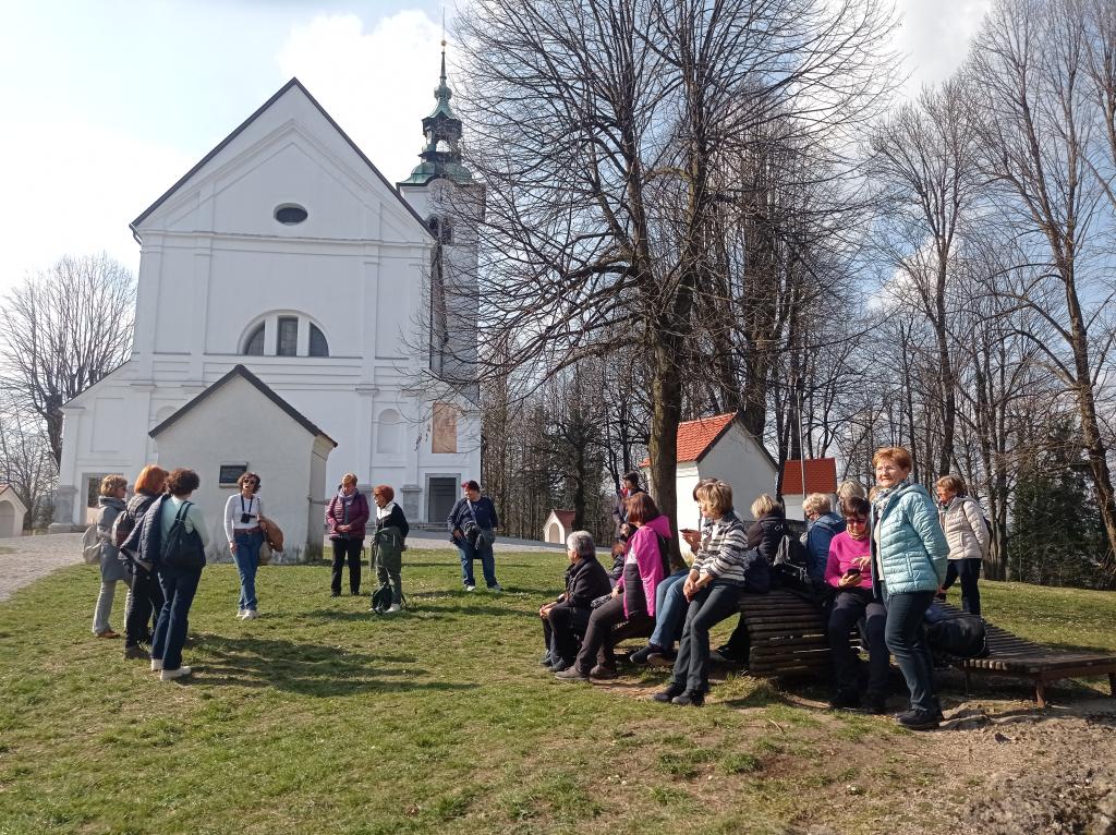 Klanec nas je pripeljal do »bele golobice, bele neveste« [1], to je do cerkve Svete trojice. Sede na klopci »Cankarjevi brki« smo z zanimanjem poslušali o pisateljevih ljubeznih.