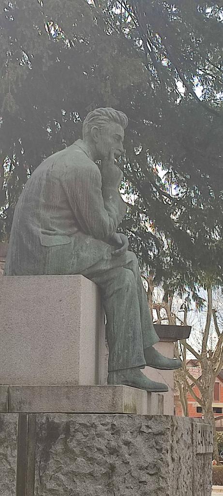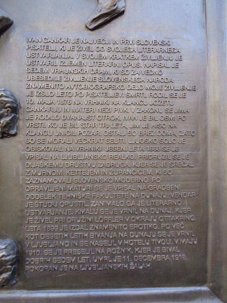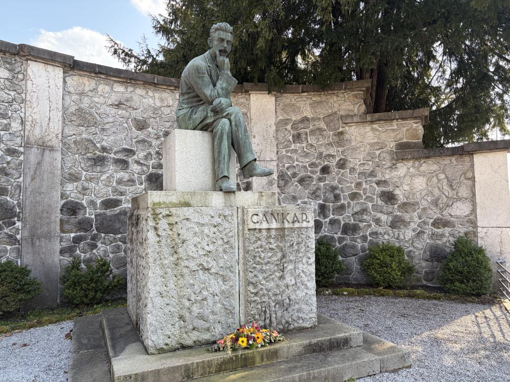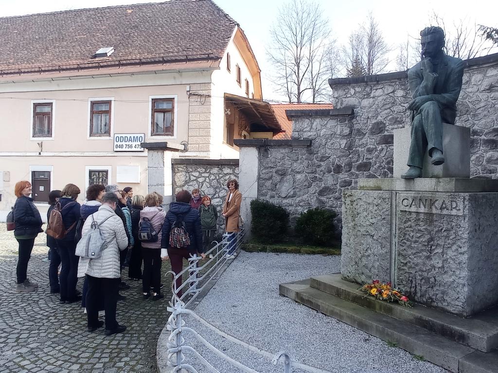 Skupina SSD je ob obletnici Cankarjevega rojstva obiskala Vrhniko in se v spremstvu dveh vodičev odpravila po Cankarjevi poti. Sprehod smo pričeli in končali pri spomeniku našega največjega pisatelja. Tako, kot je nekoč sam želel, ga je kipar Ivan Jurkovič upodobil v sedečem, zamišljenem položaju. Postavili so ga komaj 12 let po Cankarjevi smrti.