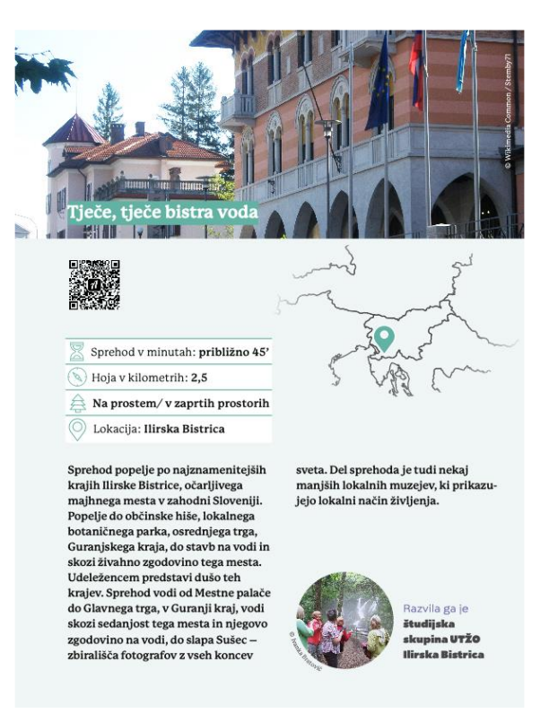 Na Univerzi za tretje življenjsko obdobje Ilirska Bistrica smo se v letu 2024 odločili, da pristopimo k raziskovalni nalogi in izdaji knjižice – posebnega vodnika, ki smo jo poimenovali »Bistriški biseri – Z menoj po mojem mestu«. Knjižica je hkrati zanimiva za branje in kot vodnik obiskovalcem po predlagani tematski poti našega mesta skozi spomine naših študentov ter spominih sedanjih in nekdanjih prebivalcev.