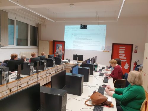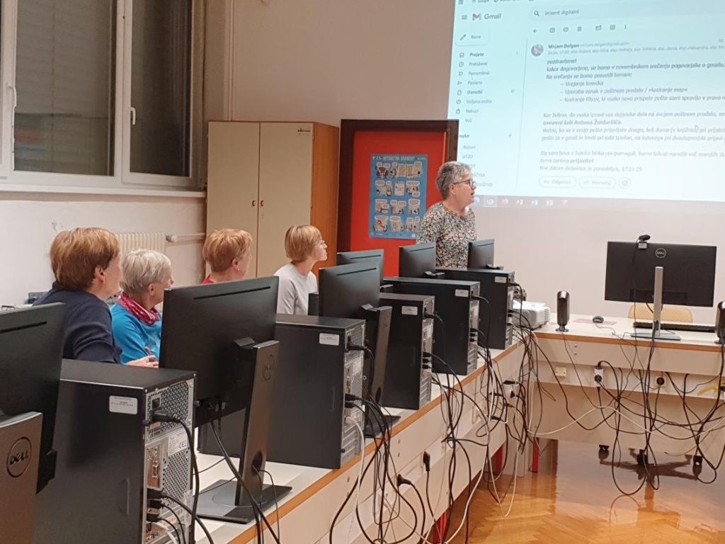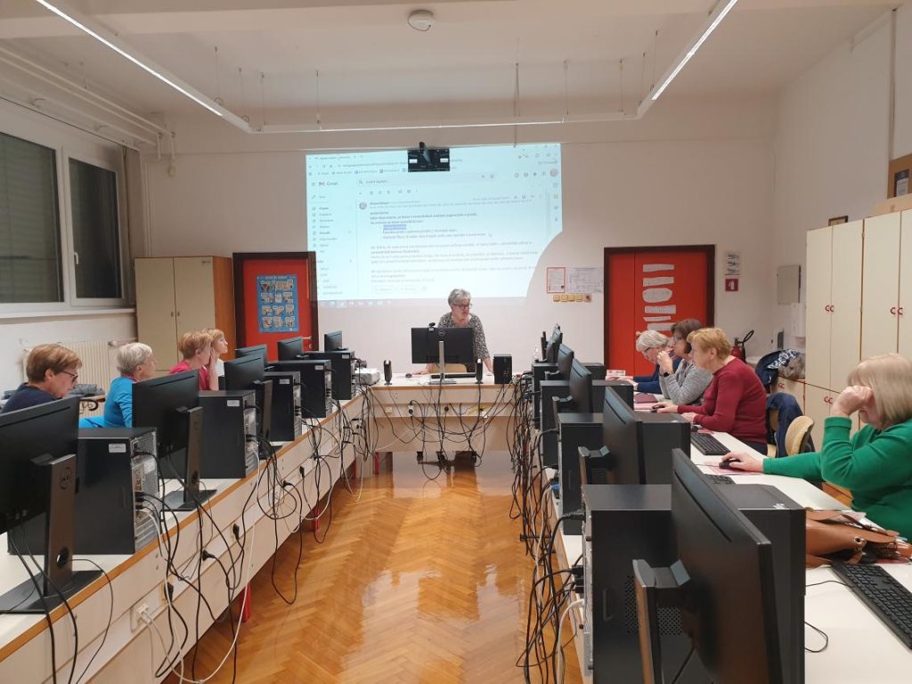 Vse prijavljene smo (in še bomo) razvrstili v skupine po 6 do 8 slušateljev in delavnica poteka v računalniški učilnici na Osnovni šoli Antona Žnidaršiča.