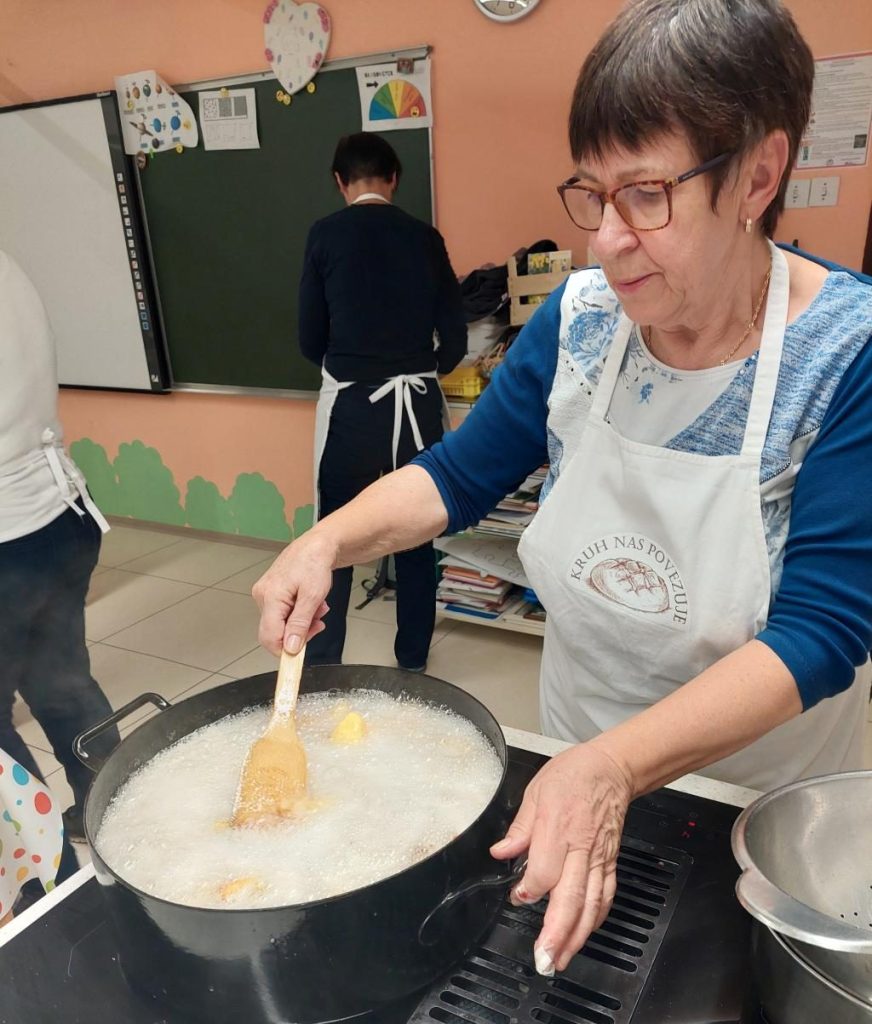 Jedi so pripravljale s srcem in z velikim veseljem, tako da jim je vse odlično uspelo in v kuhinji je zadišal omamen vonj po domačih ocvirkih in kruhu.