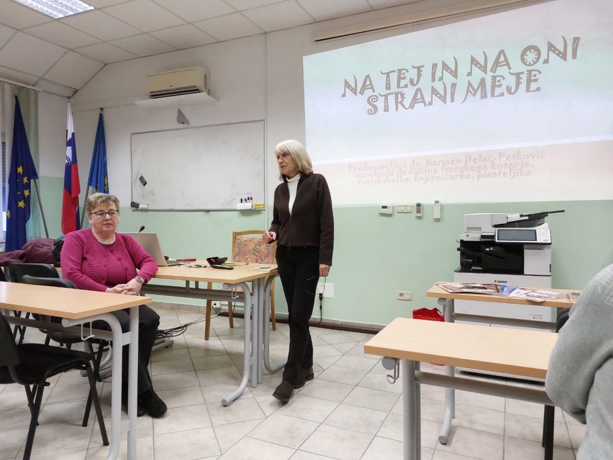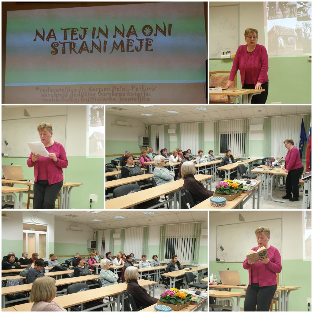Bogato kulturno dediščino in zgodovinsko izročilo tega območja že dolgo raziskuje in ohranja dr. Karmen Delač – Petkovič, imenujejo jo tudi varuhinja dediščine Gorskega kotarja, je raziskovalka, višja knjižničarka, novinarka, pisateljica, dobitnica mnogih nagrad, ki je tretjo februarsko sredo obiskala našo skupino kulturna klepetalnica. Njena dela razkrivajo zgodovinsko preteklost krajev, povezanost ljudi na obeh straneh meje, zgodbe plemiških rodbin, etnografske posebnosti, opisuje izumrle poklice (pokučarci, motritelji), ohranja spomin na znamenite kotarske osebnosti. Eno izmed takih del je biografija književnika (slikarja, prevajalca, zunanjega sodelavca SAZU) Ivana Brajdića, objavljena v hrvaškem in slovenskem jeziku. Za svoj opus prevedenih del sodobnejših slovenskih piscev v hrvaščino je bil nagrajen z Župančičevo listino, ki jo SAZU podeljuje najboljšim tujim prevajalcem. …